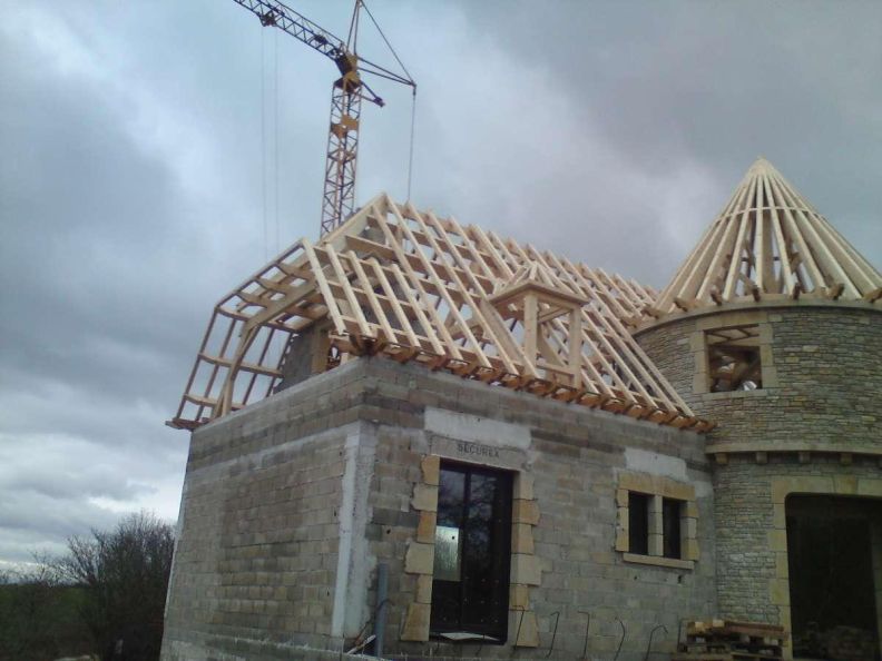 D’autre part nous disposons d’une équipe de montage qualifié qui mettent en œuvres toutes leurs compétences pour lever votre charpente bois avec d’importants moyens matériels (camion-grue, maniscopic) en respectant les règles de sécurités en vigueurs.